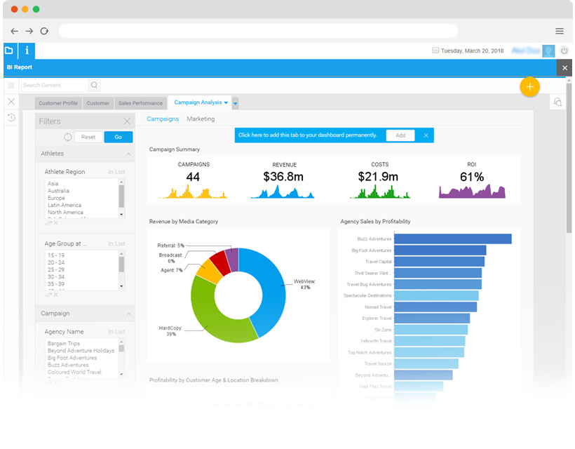Define and track the figures that are important to your business on your role-based dashboards. Set KPI for each role and user and have them presented right at the workspace.